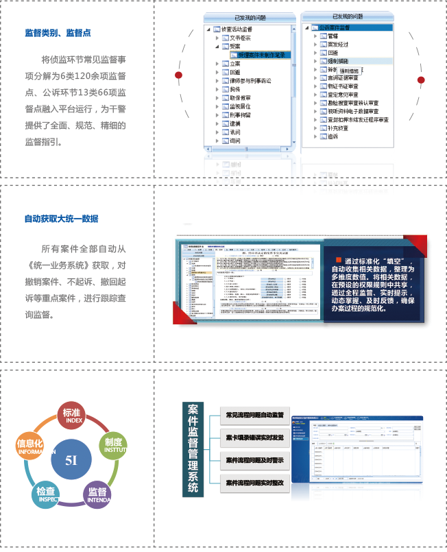 本系統是一套協助檢察院偵查監督部門,與“檢察院綜合業務系統”對接,細化監督項目,進一步確保偵查工作不出紕漏,檢察人員在對前期相關案件進行偵查的所有資料與數據進行認真審查,發現偵查機關問題制作的一份 辨認筆錄存在不規范之監督點,直接在平臺上填寫監督案卡信息,包括偵查單位、偵查部門、偵查人員等。通過這 些操作,平臺會自動生成《偵查活動監督通知書》。